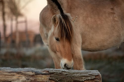 Don’t worry, dat is heel normaal. Elk winter (vaak rond februari) eten mijn paarden hout. Takken, boomschors en stammen die in de paddock liggen. Ze hebben voldoende hooi en stro om van te eten, dus een gebrek aan ruwvoer lijkt me onwaarschijnlijk.